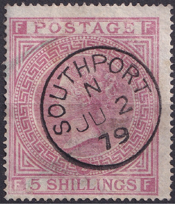 GB QV 1874 5/- Pale Rose – SG127, Plate 2 (FF), VGU, Superb Southport CDS (Cat £1500)